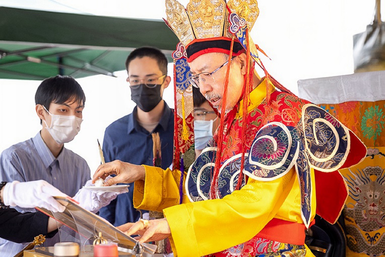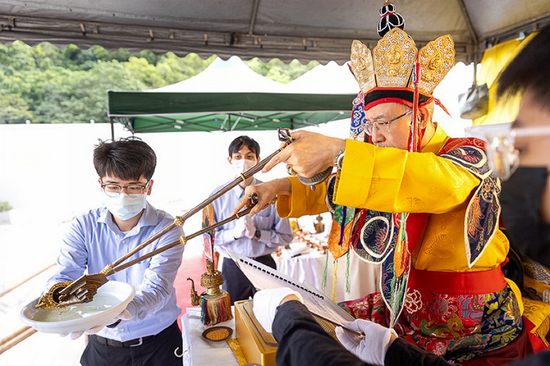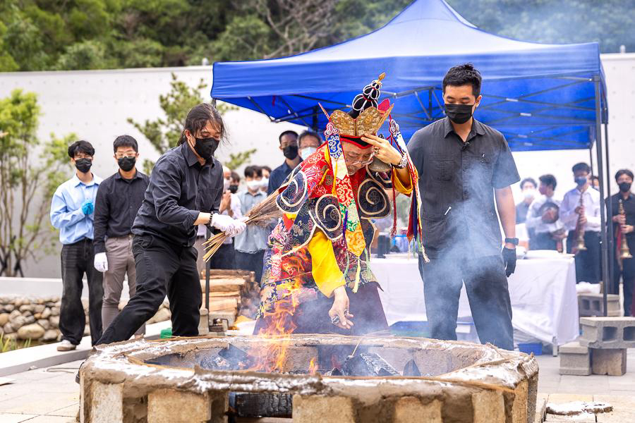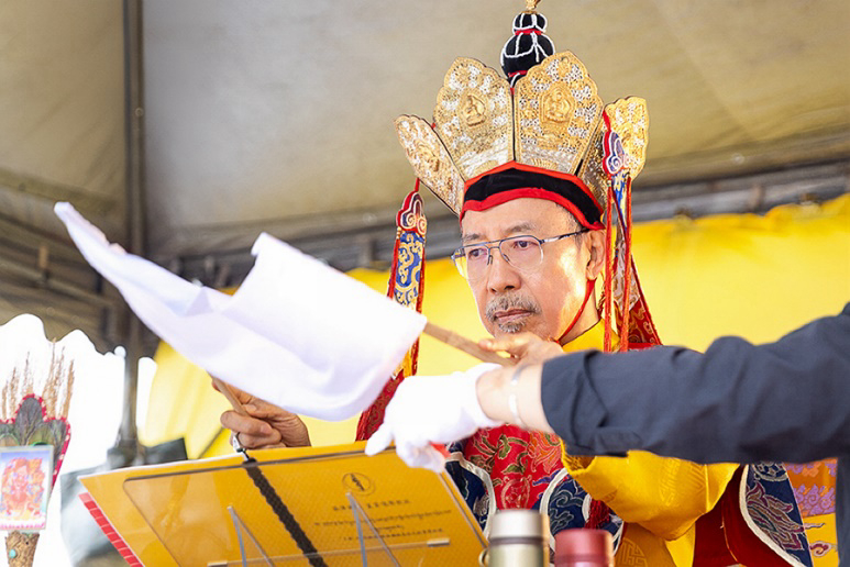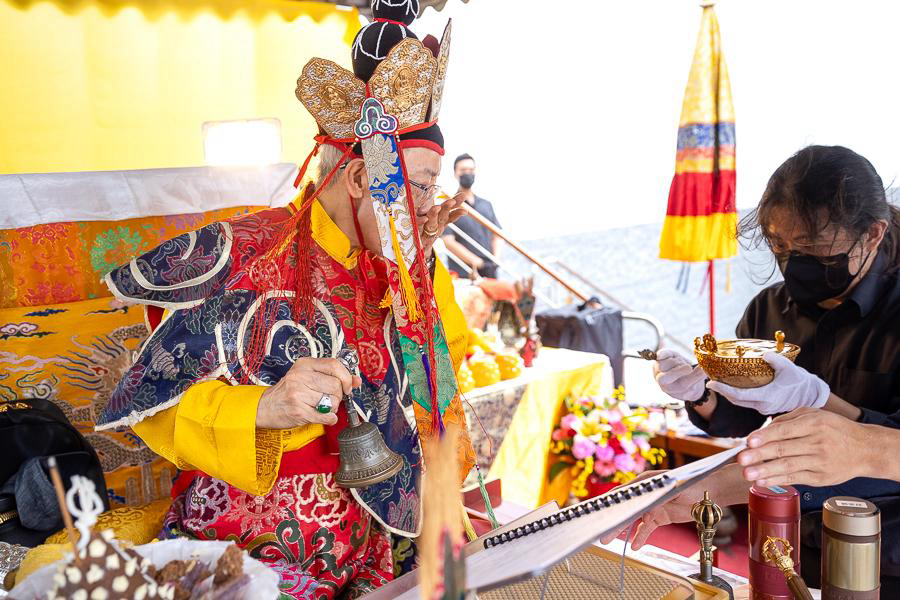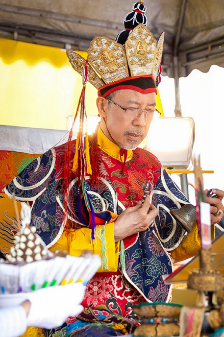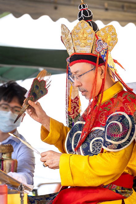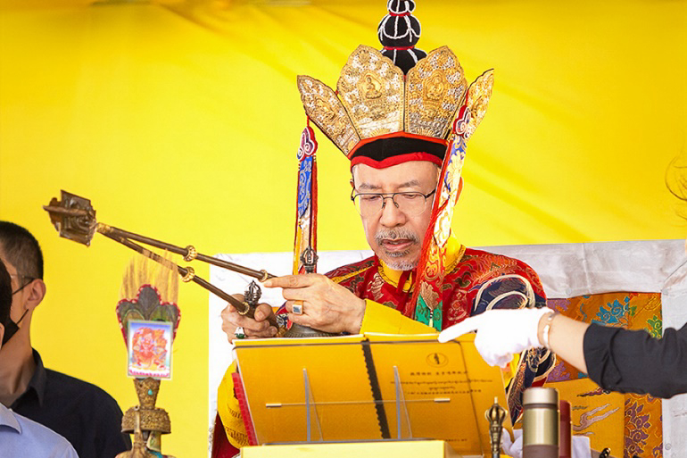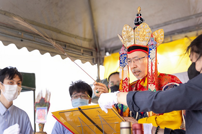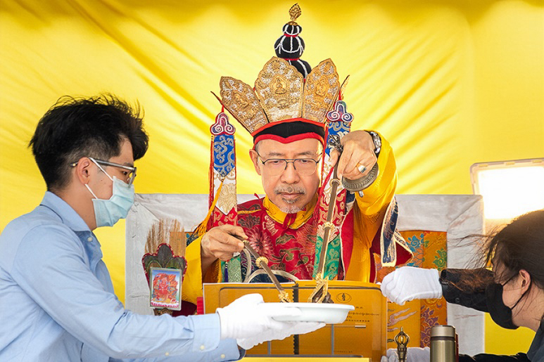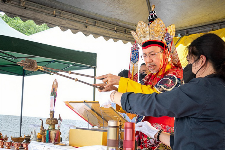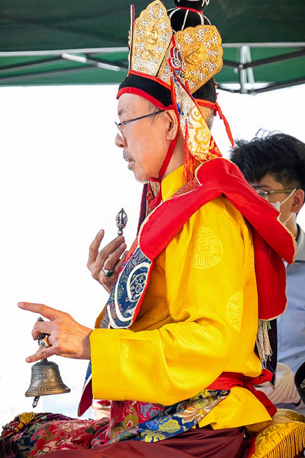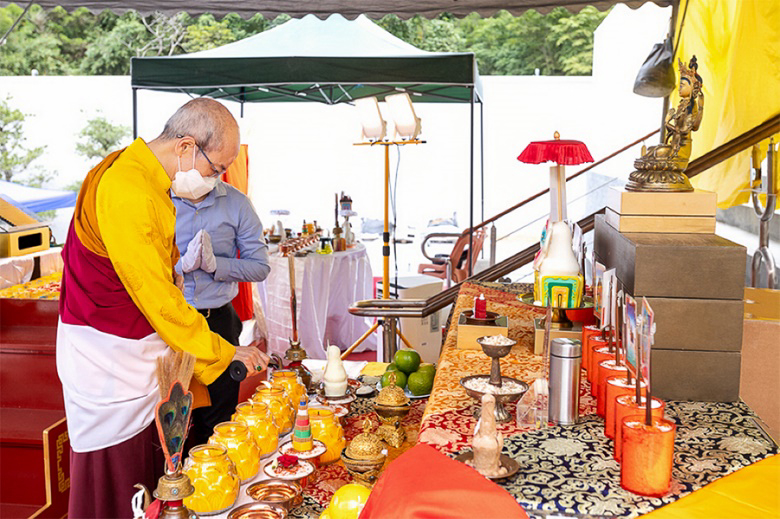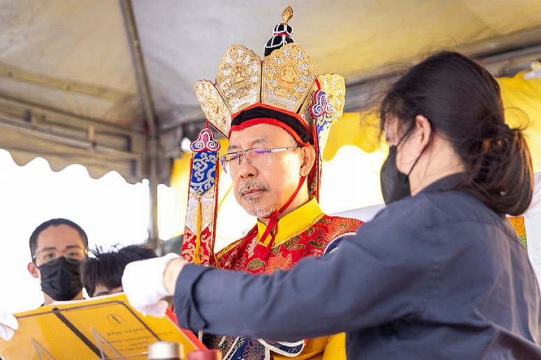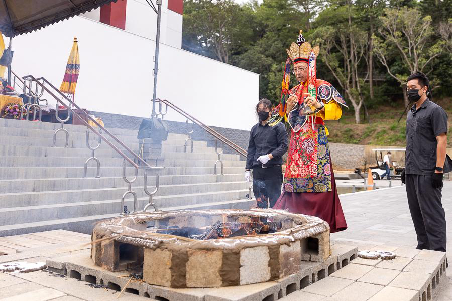 On October 20 at 9 a.m., His Eminence Vajra Guru Rinchen Dorjee Rinpoche ascended the Dharma throne at the Glorious Jewel Buddhist Monastery in Miaoli and presided over the incomparably wondrous santikarma (Puja Teachings Index 25) liturgy. Before this, Rinpoche had already perfectly completed the paustikakarma (Puja Teachings Index 27) liturgy on October 16 and the vasikarana (Puja Teachings Index 26) liturgy on October 6. Before the construction of the monastery commenced in 2020, His Eminence Rinchen Dorjee Rinpoche had already completed the four fire offering liturgies of santikarma (Puja Teachings Index 25), vasikarana (Puja Teachings Index 26), paustikakarma (Puja Teachings Index 27), and raudrakarman (Puja Teachings Index 28) in succession, to ensure the smooth progress of the monastery’s construction. Now, as the construction approaches completion, Rinpoche once again practices these four fire offering liturgies, sincerely praying that the monastery and all its practitioners be auspicious, that all obstacles may vanish, and that they may obtain the good fortune of the four fire offering liturgies.