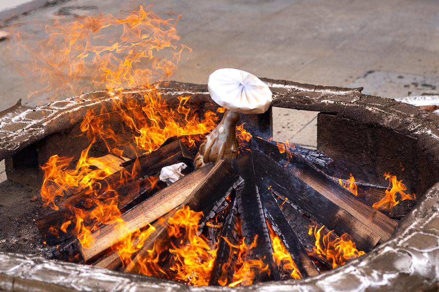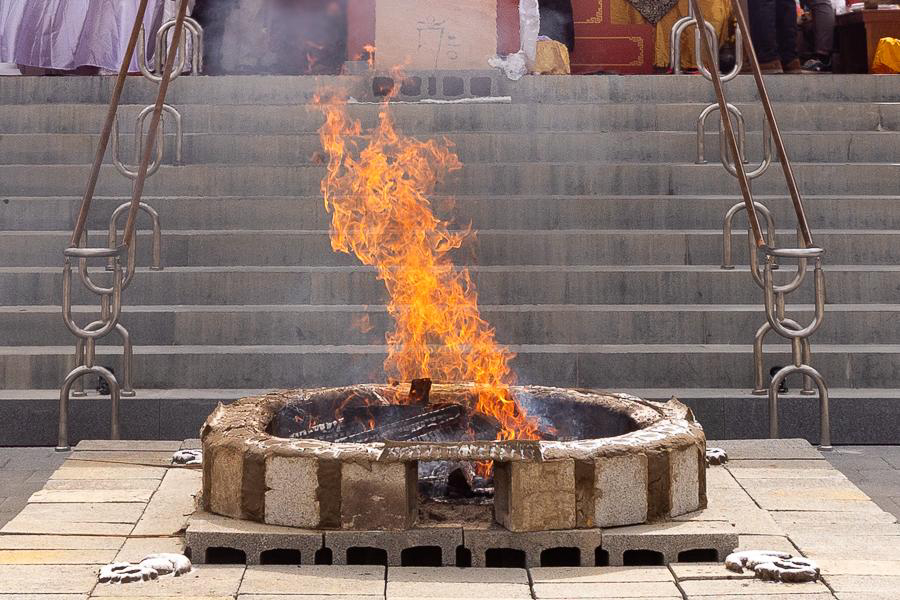 Rinpoche, adorned in Dharma vestments and Dharma crown, performed the liturgy within the compassion of sunyata (Puja Teachings Index 21). The flames continuously manifested countless auspicious signs, as if the yidam appeared as various nagas, devas, and Dharma protectors. The merits of Rinpoche’s practice are truly inconceivable, bringing boundless benefit to all sentient beings.