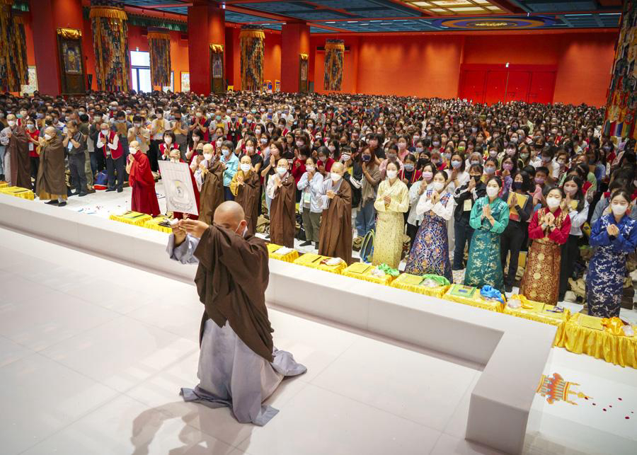 Eminence Rinchen Dorjee Rinpoche possesses compassion and wisdom of Śūnyatā (Puja Teachings Index 21), and having pity and compassion upon sentient beings suffering and dying from natural disasters, accidents, warfare, and pandamics, made a vow of great karuna (compassion); beginning in 2005 for 16 consecutive years, Rinpoche presided over the Indiscriminate Amitabha Puja for Transferring Consciousness of the Drikung Kagyu Order of Tibetan Buddhism in Taiwan with over 20,000 attendees. Even in 2020, during the severe period of the COVID-19 pandemic, Rinpoche still held the puja. Furthermore, in response to the sincere implorement of Japanese believers, Rinpoche traveled to Japan in 2012, 2016, and 2024, to transfer the consciousness of the deceased and all sentient beings with fate from the 2011 Great East (Tohoku) Earthquake and Tsunami, and the Tajima Earthquake that occurred 100 years ago.