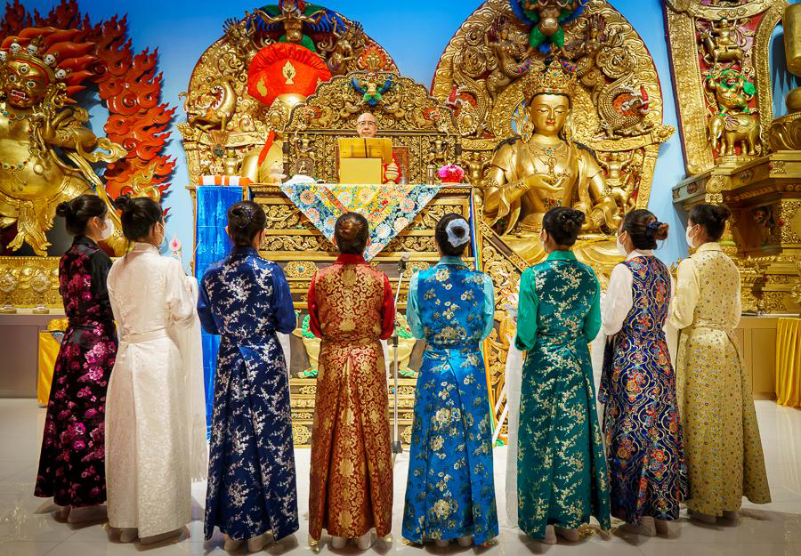 The Founding Abbot Guru, His Eminence Rinchen Dorjee Rinpoche, presided over the one-year anniversary puja at the Glorious Jewel Buddhist Monastery of Rinchen Dorjee Rinpoche on November 9, 2025. Since the consecration on November 12 last year, Rinpoche has upheld the great vow to propagate the Dharma and benefit sentient beings, and has held incomparably wondrous pujas at the Monastery every month. On this memorial day of the Monastery’s first anniversary, Rinpoche especially held a puja for the entire day; in the morning, presiding over the incomparably wondrous Liturgy of Guru-Puja—Rain of Blessing in the morning, and the Tsok Liturgy (Puja Teachings Index 03) of the Guru Puja in the afternoon, and for the first time, presiding over the purifying Dharma method to eliminate karmic obstacles from the accumulated past lives for his refuge disciples, and purify the obstacles for learning Buddhism.