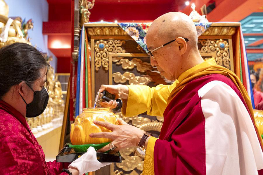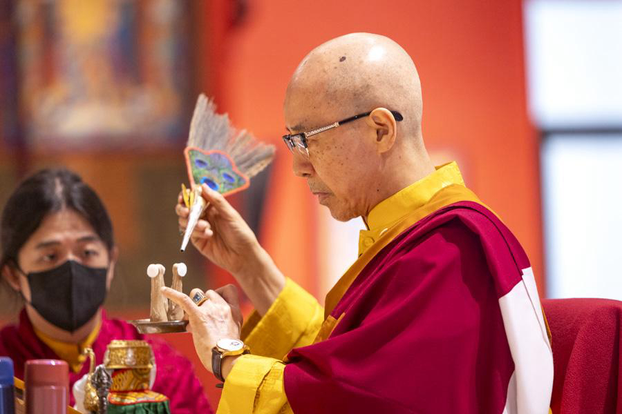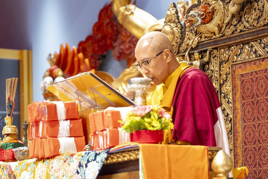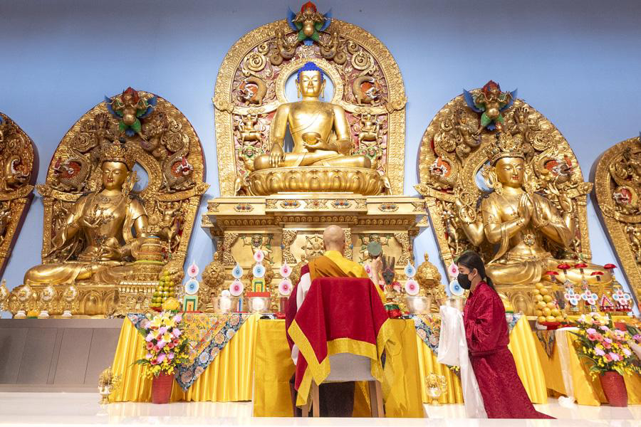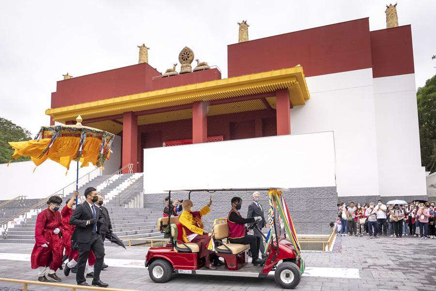 法會當天一早,與會大眾步入佛寺園區時,空中飄來勝妙香氣,群鳥歡鳴。佛寺的金頂,在陽光照耀下,發出金色的光芒。仁欽多吉仁波切的菩提心願,永遠普照加持無邊無際的眾生。