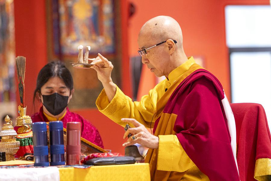 佛寺大殿開光儀軌圓滿後,仁波切前往密殿進行開光儀軌。