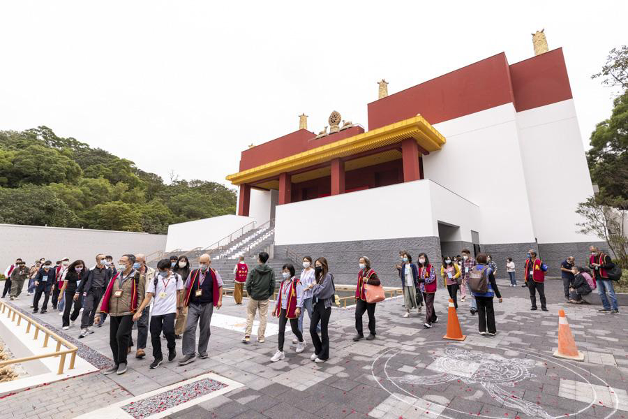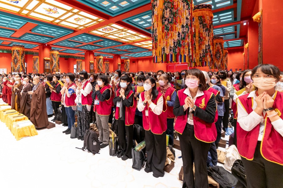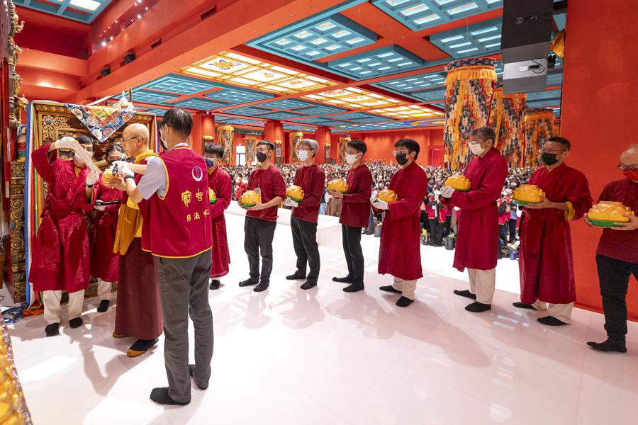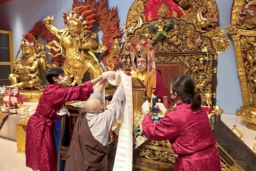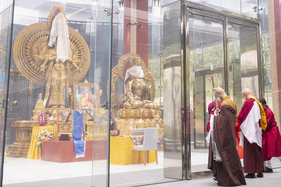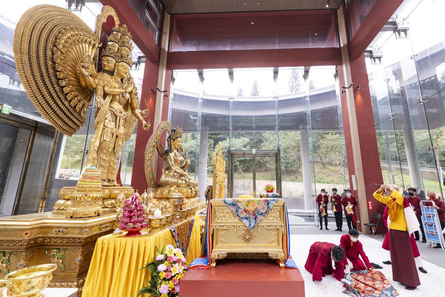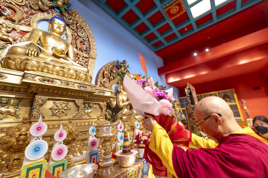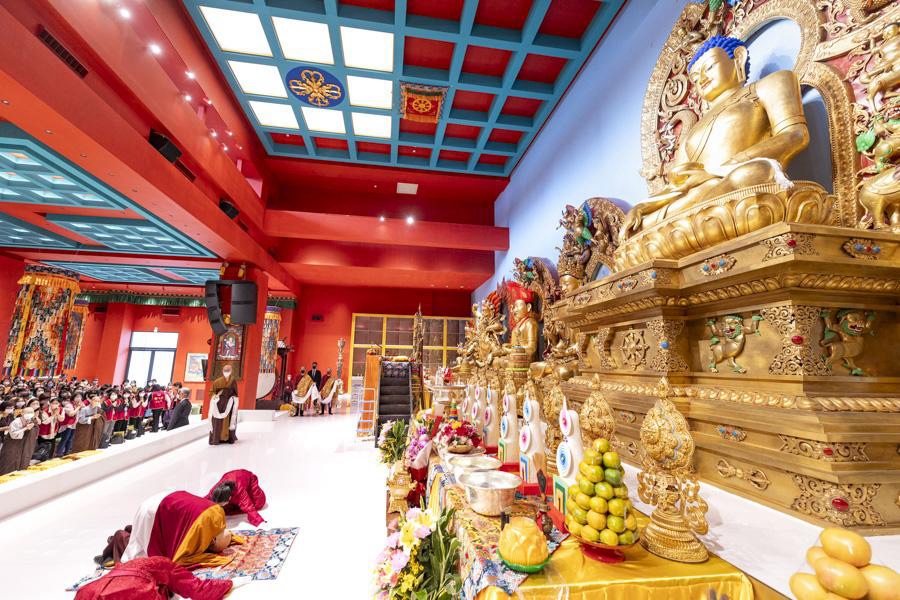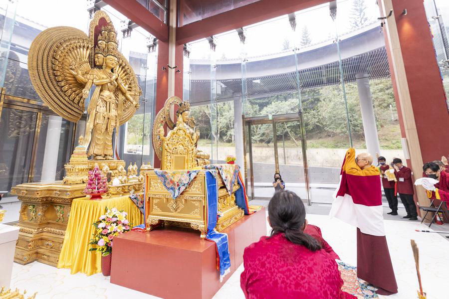 開光儀軌圓滿後,仁波切帶領與會大眾恭敬頂禮諸佛菩薩三遍,並代替眾生供養花束。