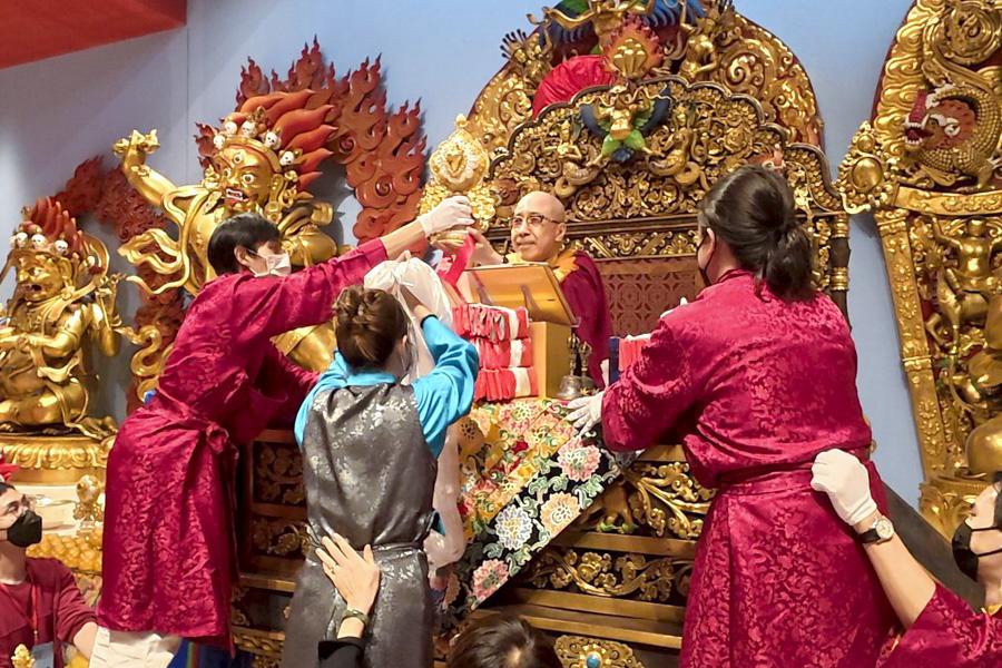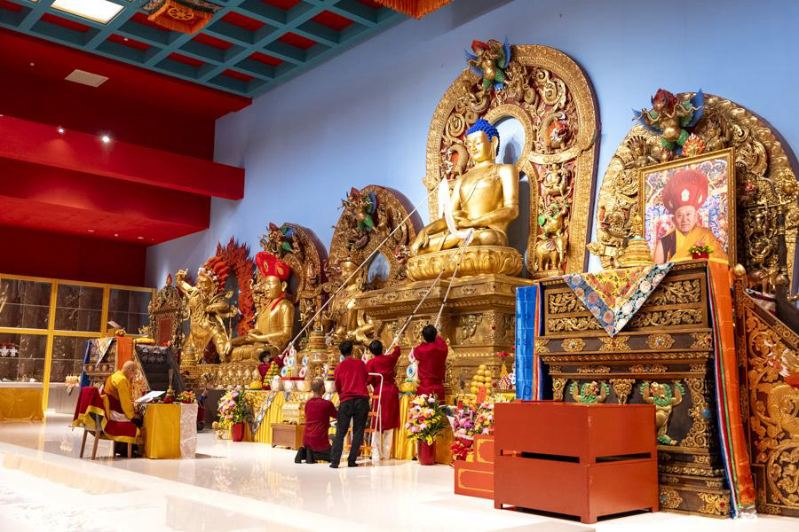 2024年11月12日是仁欽多吉仁波切寶吉祥佛寺開光的殊勝吉祥日,由開山住持上師尊貴的 仁欽多吉仁波切於寶吉祥佛寺親自主法開光大典。仁欽多吉仁波切特別懇求尊勝的 直貢澈贊法王賜予此開光吉日,兩千名來自海內外的弟子和信眾共襄盛舉,顯密四眾具足,共同參與此次殊勝的開光法會。仁波切曾開示,佛寺開光是讓佛菩薩的光照耀佛寺及修行人,讓一切都吉祥。