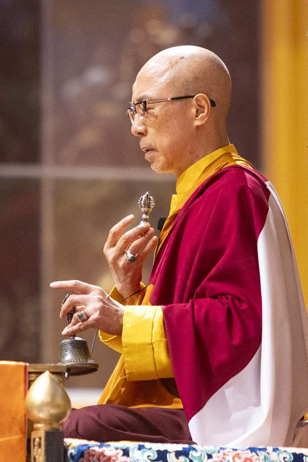 仁波切修持武的阿奇護法儀軌,並繼續帶領大眾持誦六字大明咒良久。