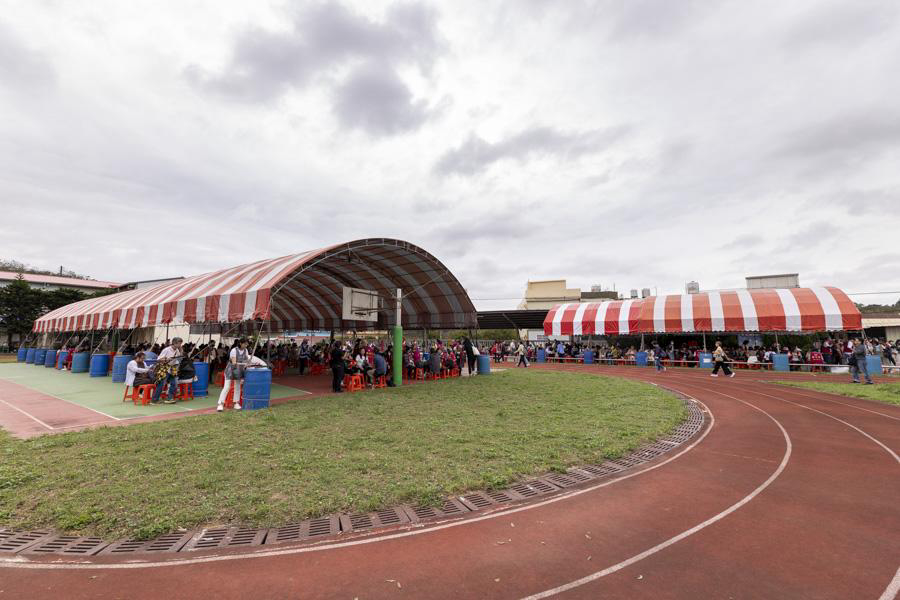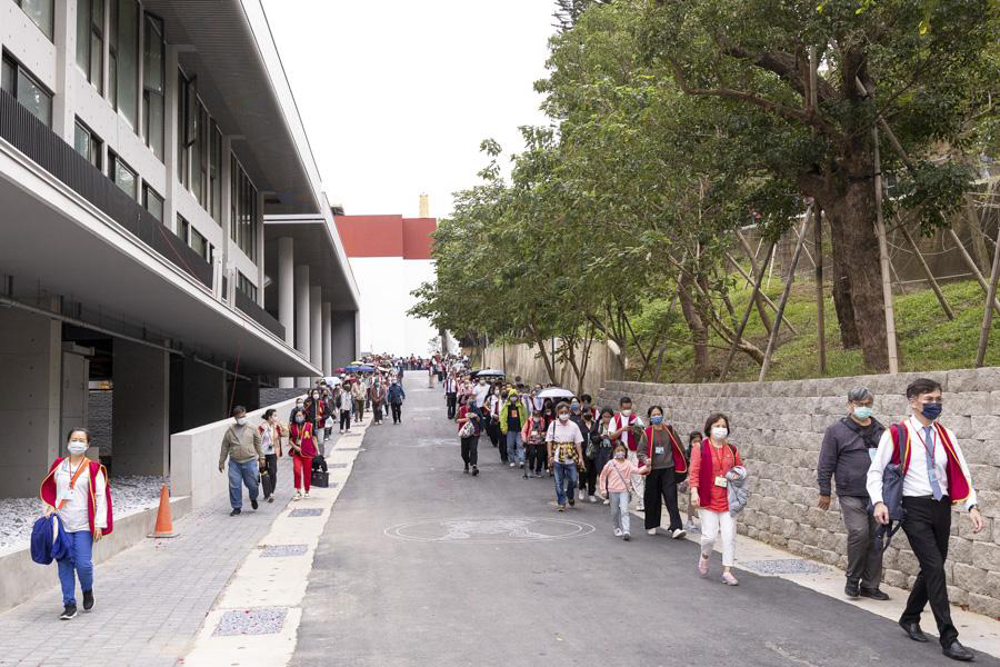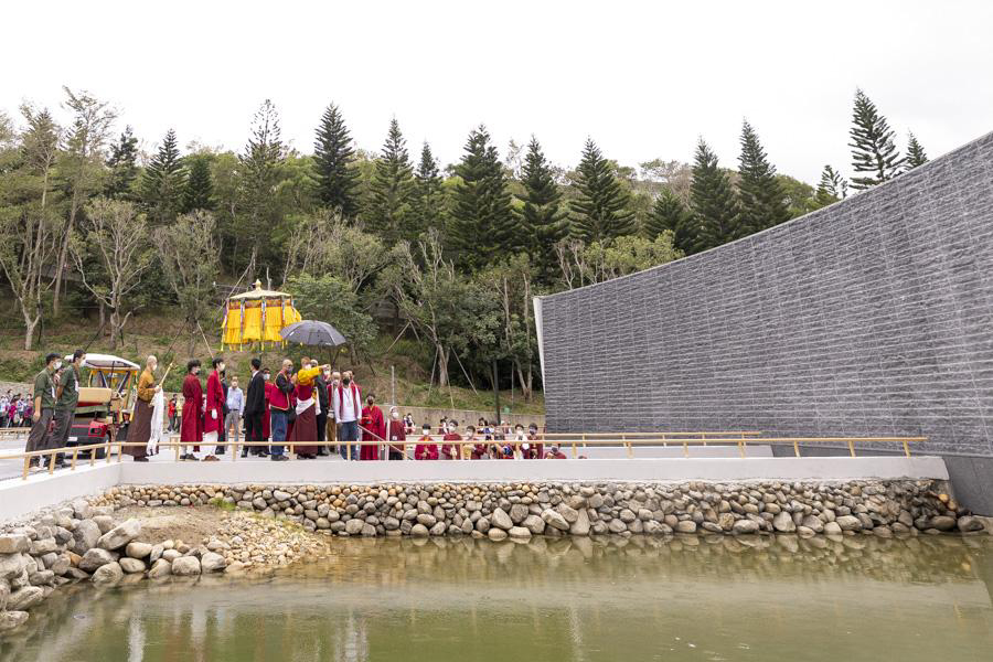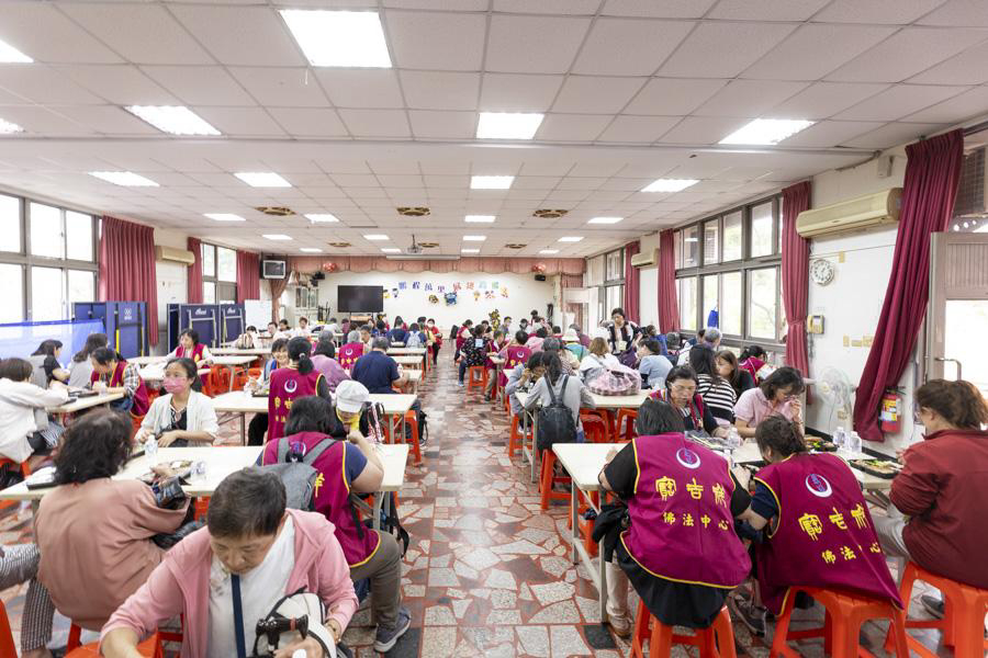 上午開光法會殊勝圓滿。午餐時間,仁波切特別安排與會大眾搭乘接駁車至附近國小用餐。當天中午用餐的場地、餐食及來回佛寺的接駁交通費用,皆由 仁波切個人出資。因為 仁波切說:「今天等於大家第一次來仁波切的新家,由仁波切供養大家。」